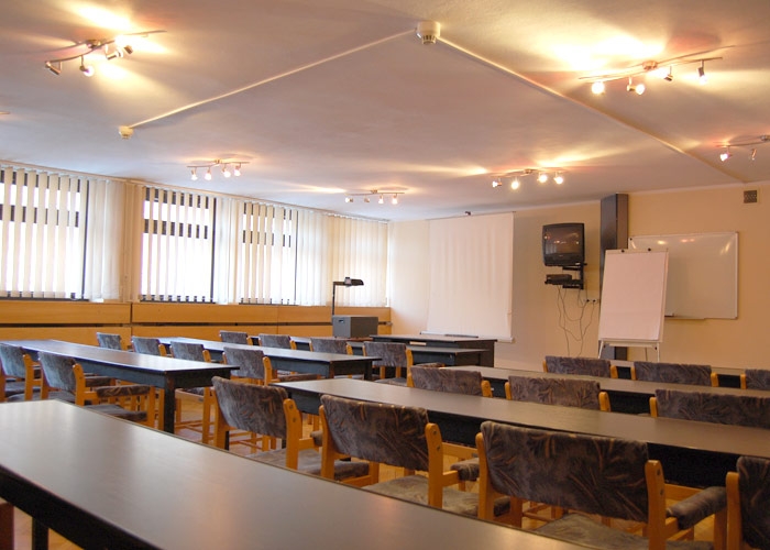 Conference rooms are equipped with a multimedia projector, video recorder, TV set, PA system (public address system), wireless microphone, flipcharts, screens of different size, overhead foil projector, slide projector, access to the Internet.